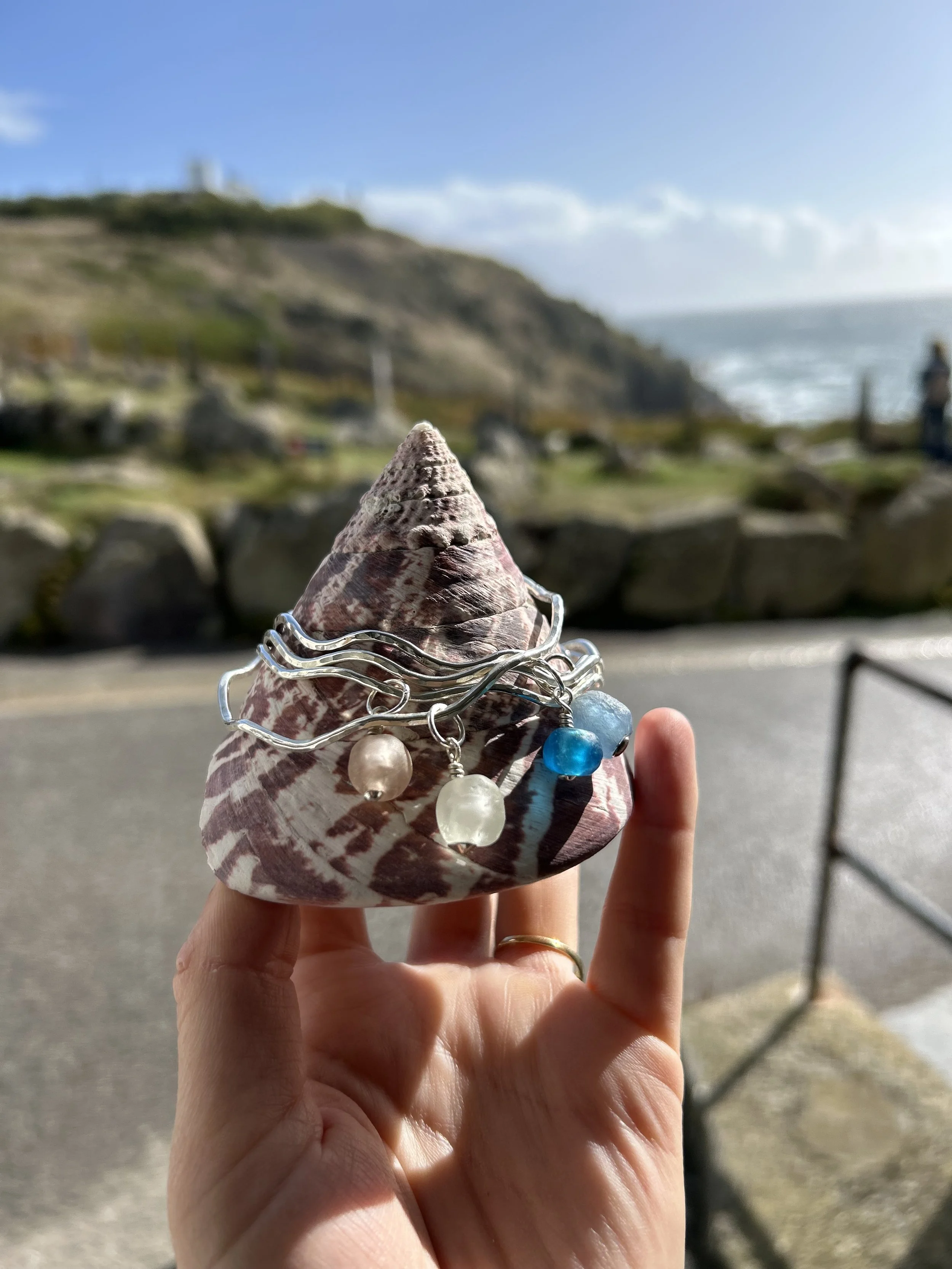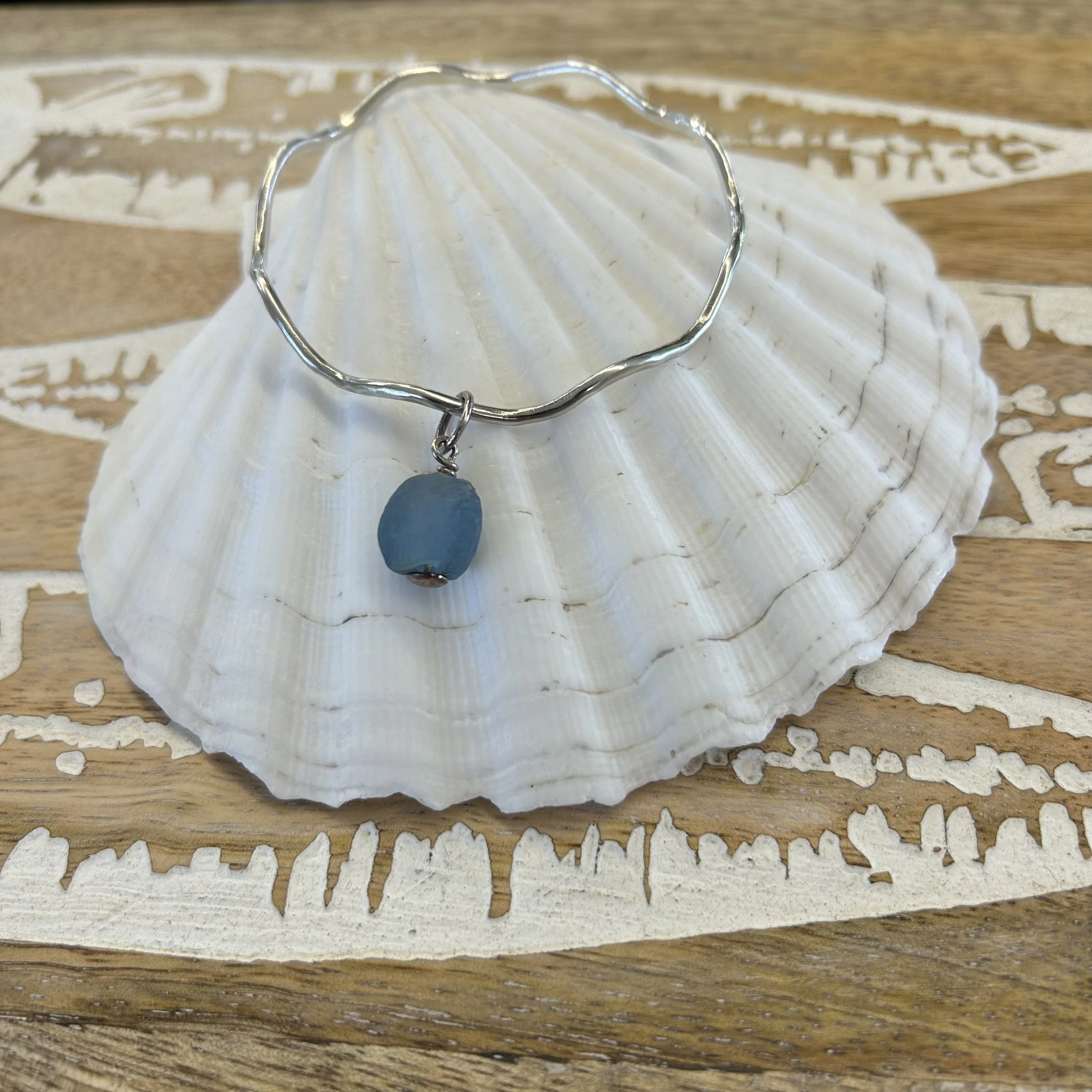 Silver Etched disc with a semi-precious turquoise 4mm stone.