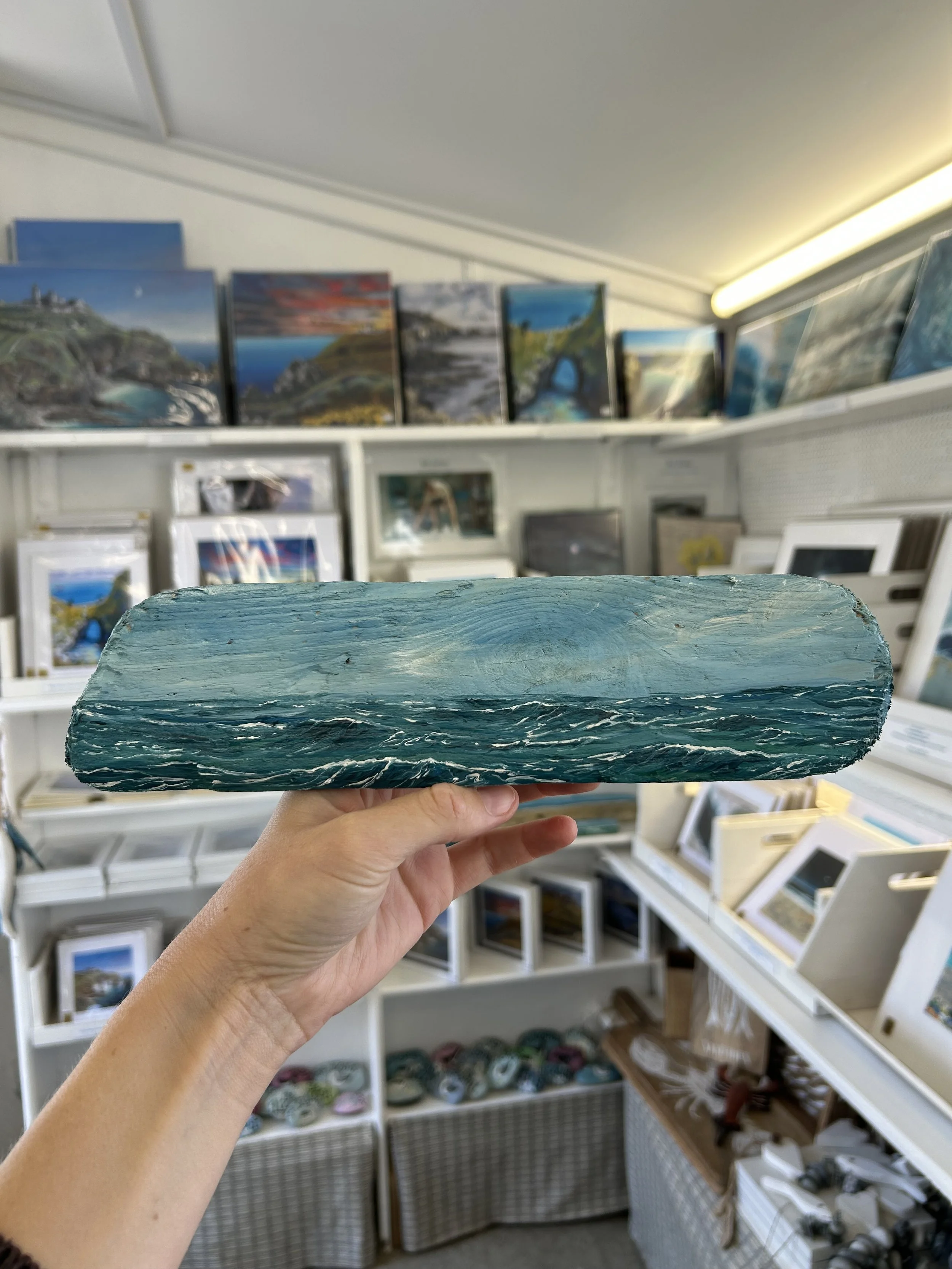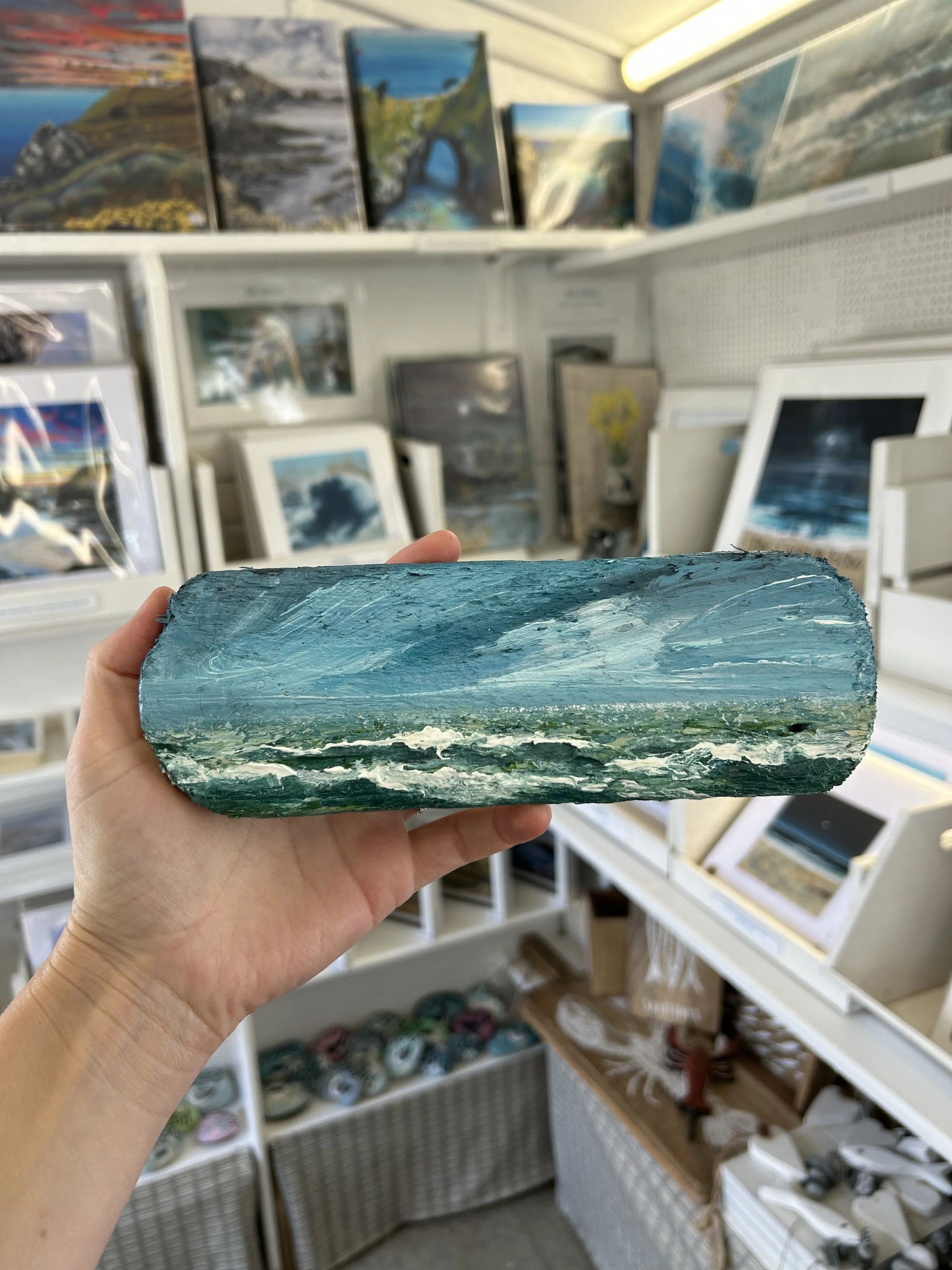 Acrylic and mixed media on Cornish driftwood